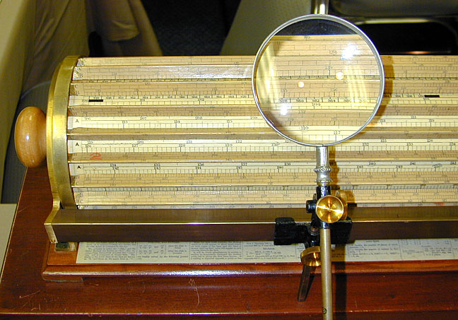 Prologue In the 16th Century, engineering design as we know it today, with its emphasis on precise measurements and finely calculated tolerances, is unthinkable. And yet, every scientist, mathematician and alchemist feels that there are basic fundamental mathematical relationships that underpin the natural world. The pre-eminent figures in science both contribute to the creation of the slide rule and make use of it in their work, including Galileo, Napier, Gunter, Oughtred, Newton, Gauss, Watt, Priestley, Fulton, Fuller, Einstein, Fermi, and Von Braun. A quick look at the first five of these men covers the creation and initial evolution of the slide rule. Just Before the Slide RuleGalileo Galilei popularizes the sector at the very end of the 16th Century. The sector is a graduated ruler that uses trigonometric formulae and a caliper to calculate squares, cubes, reciprocals and tangents of numbers. Galileo's design of the sector as a mathematical tool can be seen as the moment when calculation aids cease to be based upon counting and instead exploit the deeper relationships among numbers. His invention is still in use as a navigation aid in the 20th century … 300 years later. John Napier dramatically advances the understanding of number relationships in 1614 with his invention of logarithms. Since logarithms are the foundation on which the slide rule is built, its history rightly begins with him. His early concept of simplifying mathematical calculations through logarithms makes possible the slide rule as we know it today. Chronology of the Slide RuleNapier himself contributes Napier's Bones in 1617, calculating sticks based on the gelosia, or lattice, multiplication method. In 1620 Edmund Gunter of London makes a straight logarithmic scale and performs multiplication and division on it with the use of a set of dividers, or calipers.
